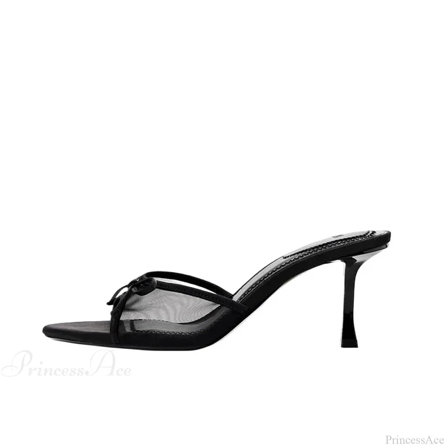 Summer Bow Decorated Mesh Fabric High-heeled Fashion Low Heel Pump